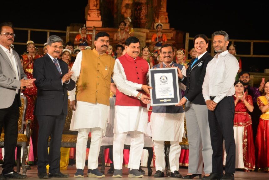इस मौके पर सीएम मोहन यादव ने सभी कलाकारों को बधाई दी और कहा कि शिल्प और नृत्य कला के अद्भुत संगम की भूमि खजुराहो में विश्व रिकॉर्ड बना है। मंदिरों की छांव में जीवंत हुए कला संस्कृति के सबसे बड़े समारोह खजुराहो नृत्य महोत्सव में 139 नर्तकों के दल की 18 समूहों में भरतनाट्यम, कथक, कुचिपुड़ी एवं ओडिसी शास्त्रीय नृत्यों की लगातार 24 घंटे से अधिक तक चली अनूठी प्रस्तुति ने सबको मंत्रमुग्ध करते हुए गिनीज बुक ऑफ रिकॉर्ड्स में अपनी उपस्थिति दर्ज की है, इसकी गूंज न केवल खजुराहो, बल्कि भारतीय संस्कृति की भी दिव्य अभिव्यक्ति है, जिसके लिए सभी नृत्य कलाकारों को बधाई देता हूं।